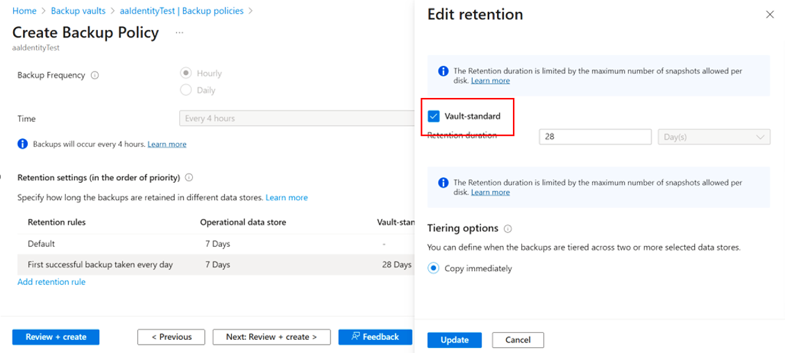 Recommended action: Update the retention rule with vault-standard duration defined on Azure portal: