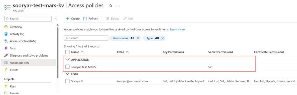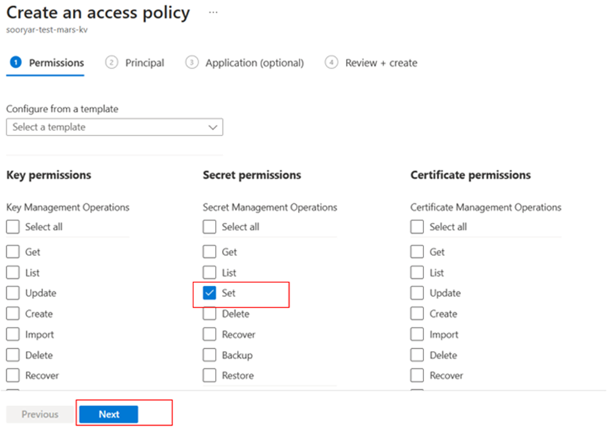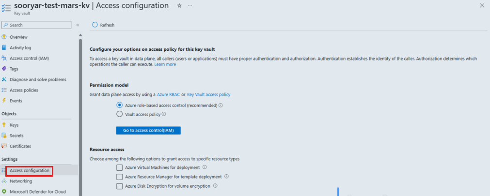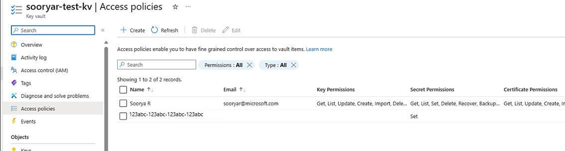 Based on the Key Vault permission model (either role-based access permissions or access policy-based permission model) configured for Key Vault, refer to the following sections.