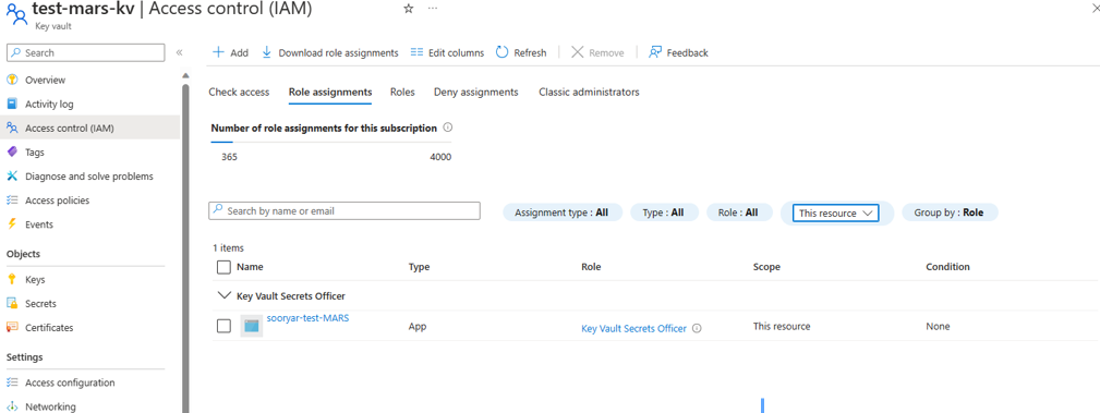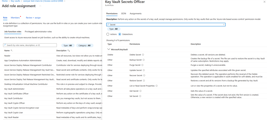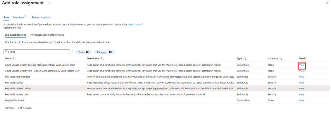 Under Details, select View to view the permissions granted by the role and ensure Set permission on Secret is available.