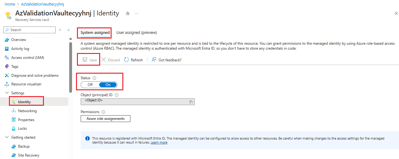 - Enabled the Recovery Services vault's system-assigned managed identity.