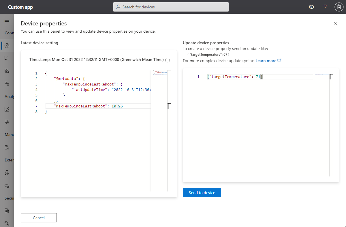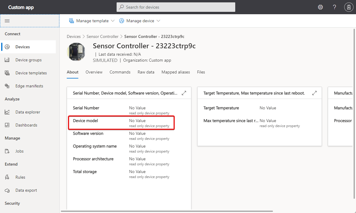 You can view and update writable properties on a device that isn't assigned to a device template.