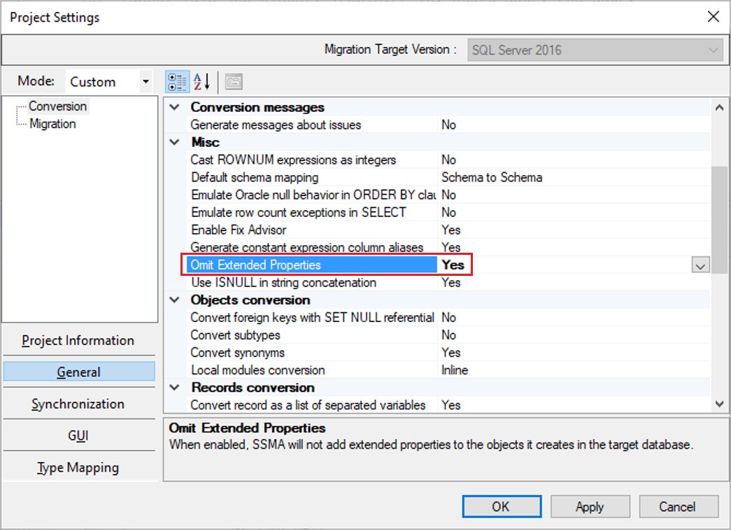 - Support for mapping of DATE type from Oracle to the SQL Server DATE type in the Type Mapping setting