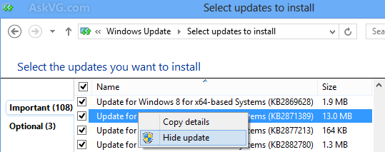 Eller du kan dölja uppdateringarna innan de installeras, högerklicka på uppdateringen :
