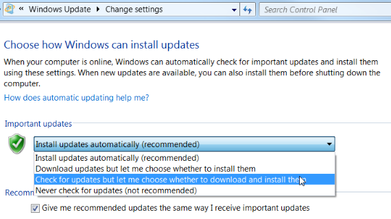 Du kan ändra inställningarna för Windows Update :