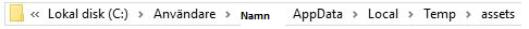 Notera att denna mappen är temporär och kommer försvinna när man tar bort temporära filer. Om du kopierar mappen assets och sparar den på skrivbordet så försvinner den inte.