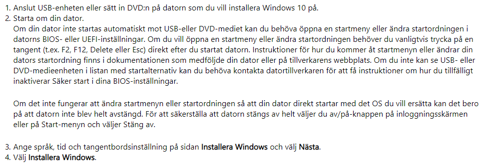 Sedan använder du installationsmediet du skapat på din mammas dator, se steg nedan: