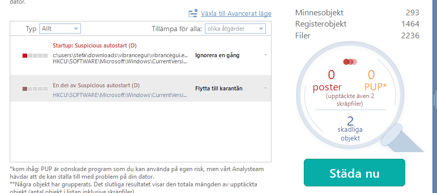Följ anvisningarna för att ta bort alla upptäckta hot.