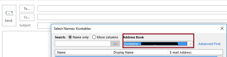 En sak som du kan kontrollera är så att inställningarna är korrekta, ifall du öppnar Outlook och går till Arkiv > Inställningar > Mail > i sektionen för Skicka mail så vill jag att du ser till att bocka i checkrutan som heter Använd listan Komplettera automatiskt för att få förslag på namn till fälten Till, Kopia och Hemlig kopia.