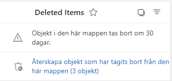 - Under Borttagna objekt kan du hitta Återställ borttagna objekt från den här mappen, återställ dem och de kommer att flyttas tillbaka igen.