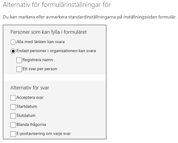 För att göra ett formulär offentligt kan du gå till **inställningarna**och välja alternativet "Alla med länken kan svara".