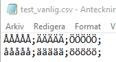 Svårt att visa eftersom t.ex Anteckningar döljer styrtecken (och visar enligt rätt kodning). Så oavsett hur filen är kodad ser den ut så här: