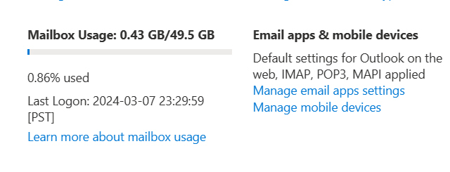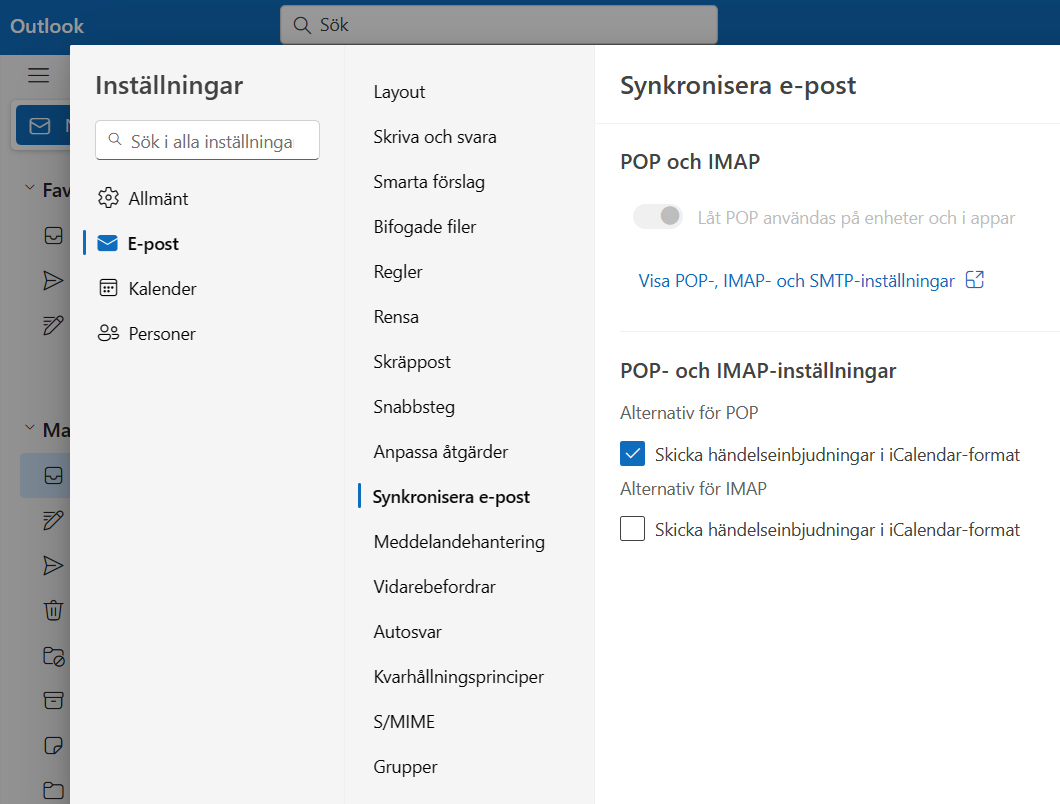 Jag har försökt leta fram och kolla alla inställningar som jag tycker ser ut att hänga ihop med detta och allt har sett ok ut tycker jag. Jag har slagit av och på funktioner rörande IMAP men ingen skillnad. När jag försöker lägga upp ett epost konto som IMAP konto i Outlook så ser man inte ens ett inloggningsförsök i efterhand under MS kontot. De har 2st epost konton och jag har försökt med båda.