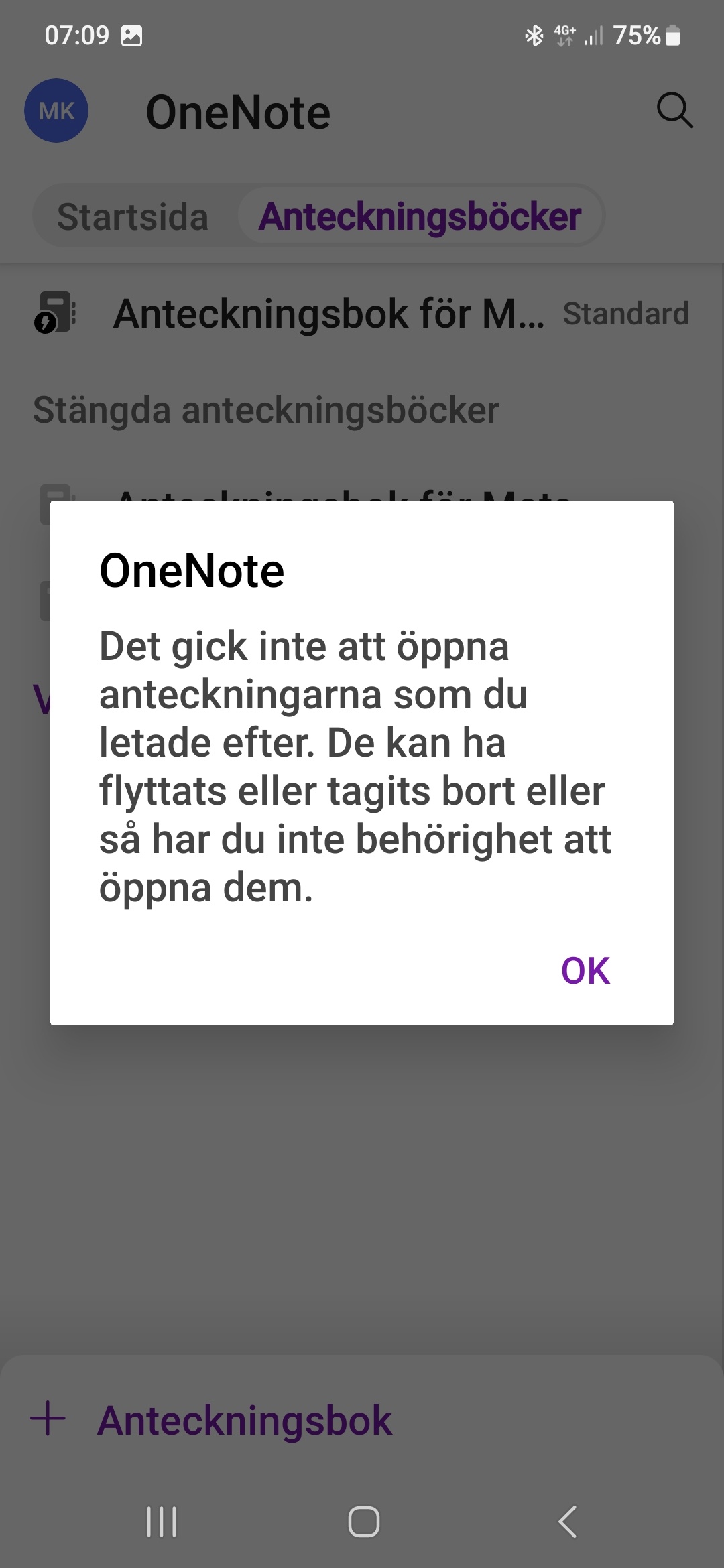 Vi förstår att dina OneNote-anteckningar inte kan öppnas på enheten.