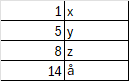 Den här formeln returnerar motsvarande resultat baserat på värdet i cell A1. Om värdet i A1 är mellan 1 och 4 returneras "x"; Returnera "y" mellan 5 och 7; Returnera "Z" mellan 8 och 13; Annars returnerar du Other.