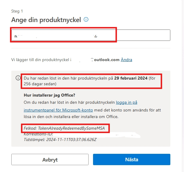 Microsoft har en webbplats för inlösen [setup.office.com], där du kan ange Office-nyckeln för att lösa in den, och nyckelns status visas.