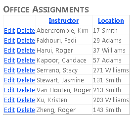 Create a new web page that uses the Site.Master master page and name it OfficeAssignments.aspx. Add the following markup to the Content control named Content2: