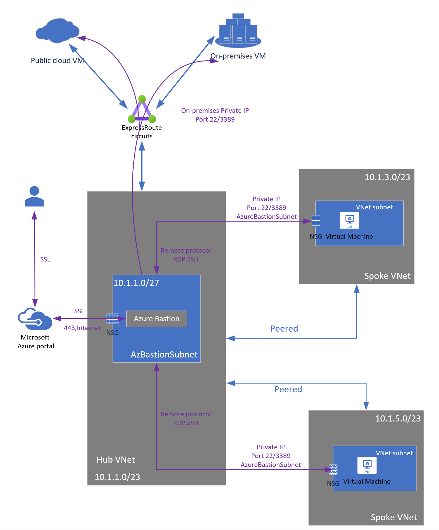 IP-based connection lets you connect to your on-premises, non-Azure, and Azure virtual machines via Azure Bastion over ExpressRoute or a VPN site-to-site connection using a specified private IP address. The steps in this article show you how to configure your Bastion deployment, and then connect to an on-premises resource using IP-based connection. For more information about Azure Bastion, see the Overview.
