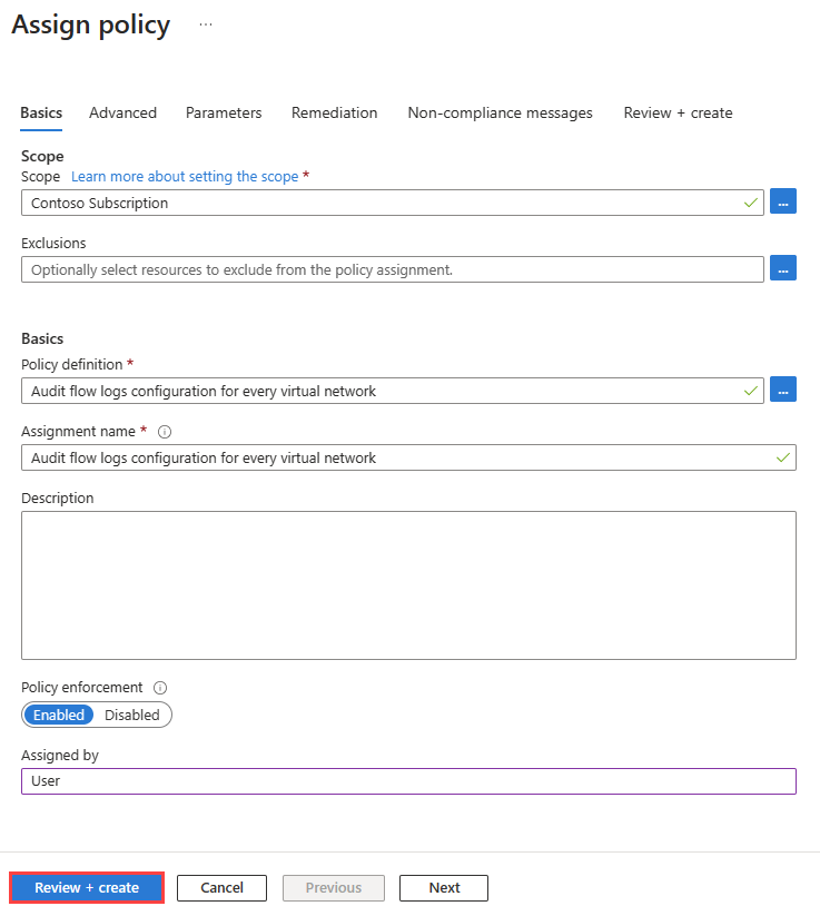 Granska flödesloggkonfiguration för virtuella nätverk med hjälp av en inbyggd princip