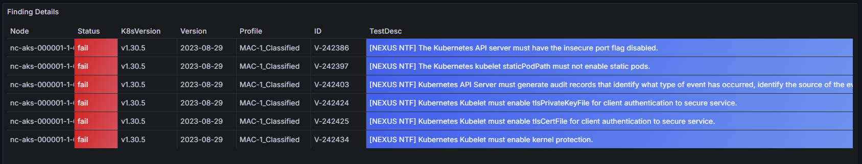 Benchmarkingverktyg för branschstandardsäkerhet används för att genomsöka Azure Operator Nexus-plattformen för säkerhetsefterlevnad. De här verktygen omfattar OpenSCAP för att utvärdera efterlevnaden av Kubernetes STIG-kontroller (Security Technical Implementation Guide) och Aqua Securitys Kube-Bench för att utvärdera efterlevnaden av Kubernetes Benchmarks för Center for Internet Security (CIS).