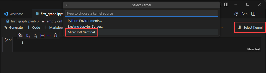 Skapa en anpassad graf med hjälp av en Jupyter-anteckningsbok i Microsoft Sentinel Visual Studio Code-tillägget.
