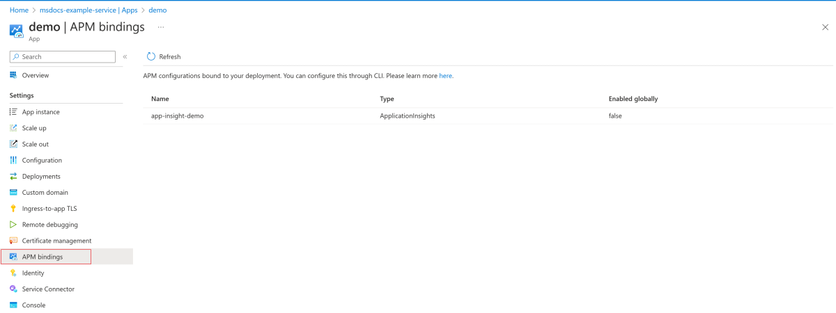 Du kan hantera APM-konfigurationer via bindningar i builder. Mer information finns i avsnittet Hantera bindningar i builder i Azure Spring Apps (inaktuell).