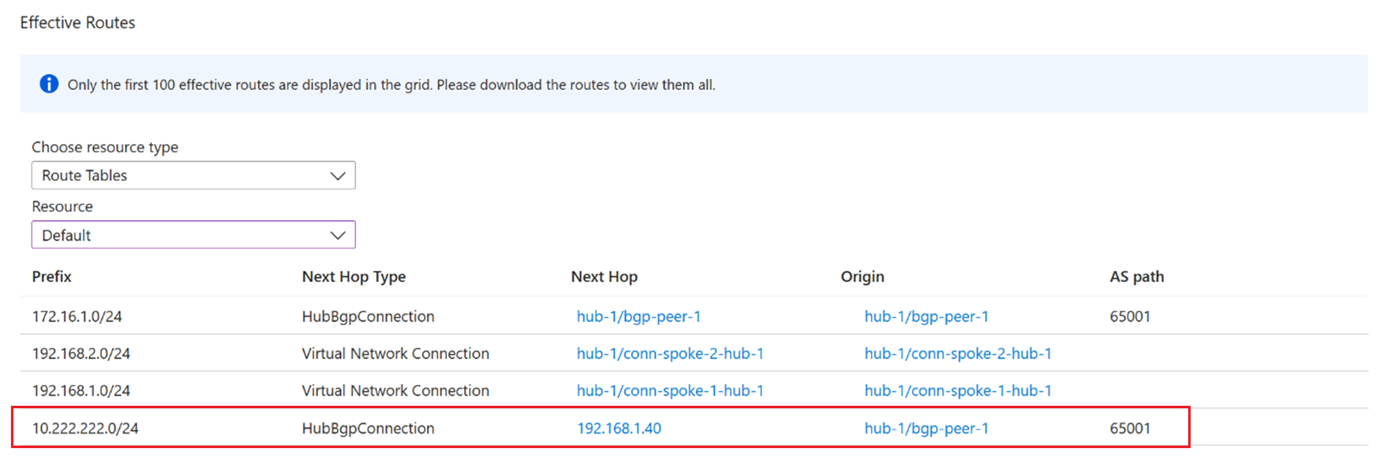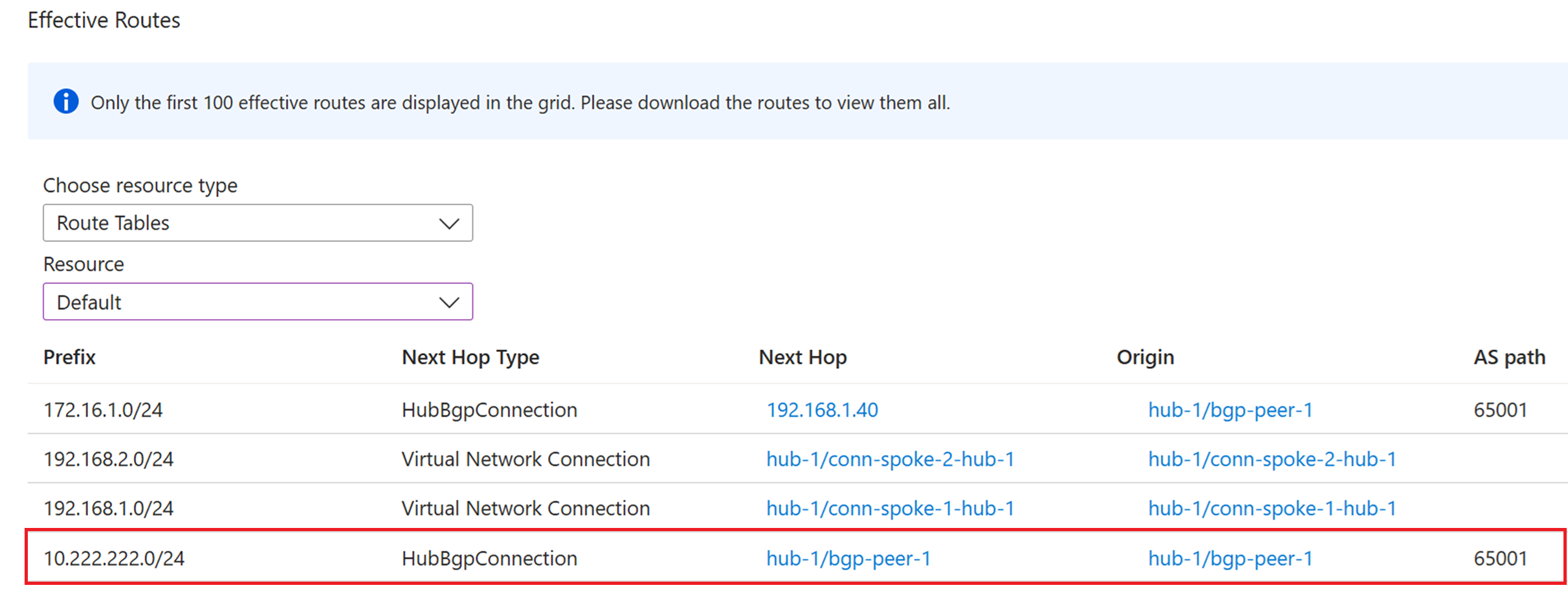 - Mer information om BGP-peering med hubben finns i BGP-peering med hubben.
