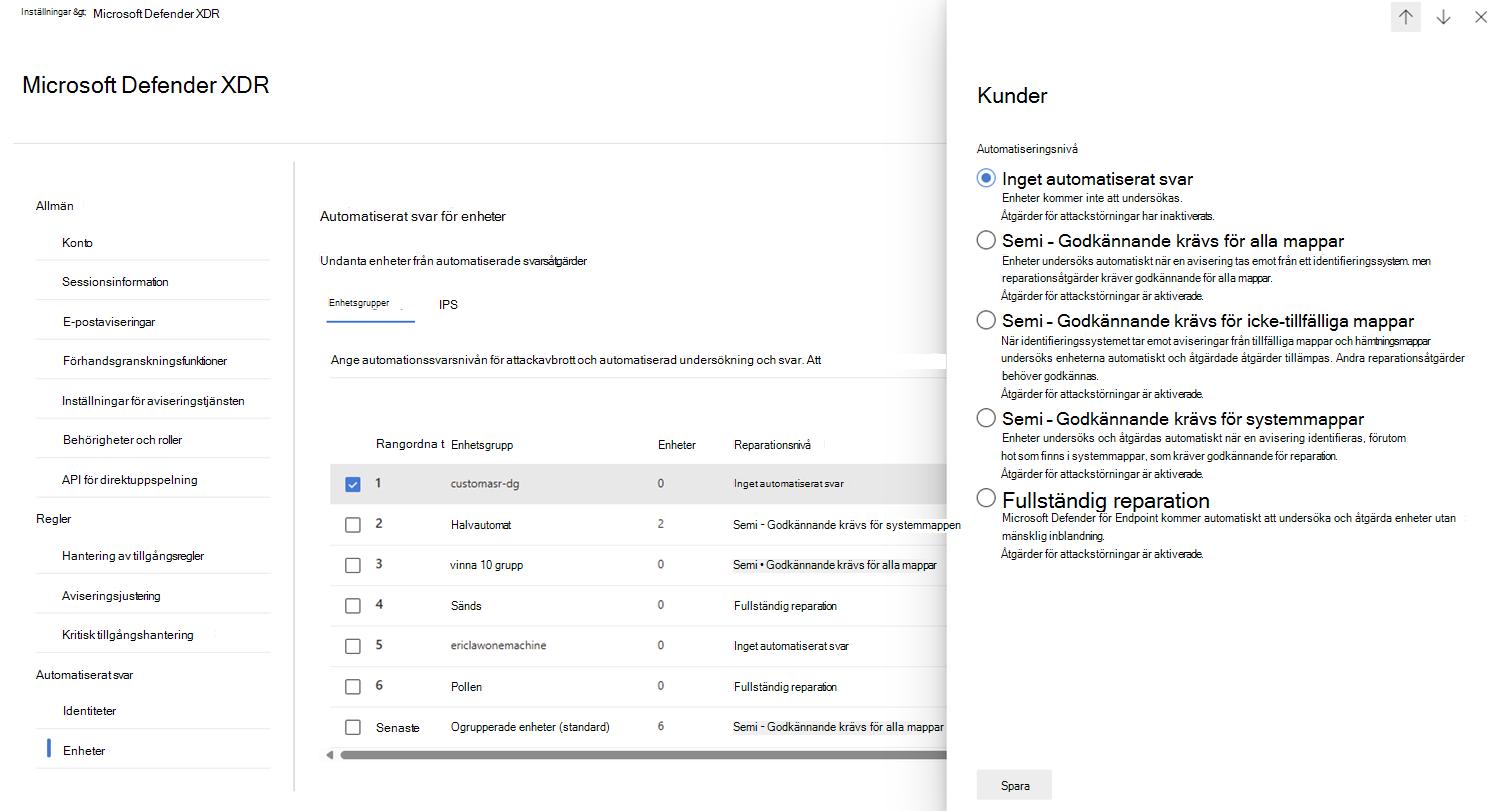 Välj Spara för att spara automatiseringsnivån för enhetsgruppen.