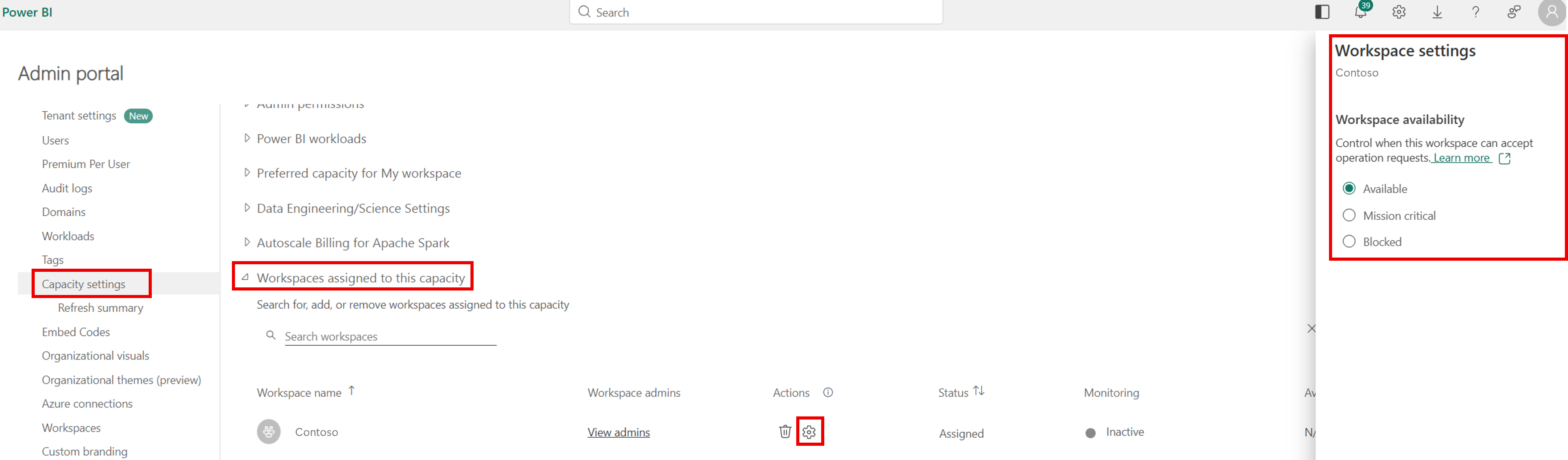 - Öppna Fabric-administratörsportalen.