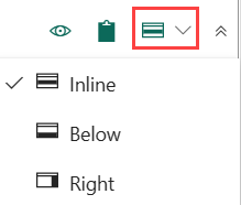 Välj på ikonen längst upp till höger i resultatrutnätet för att växla läsfönsterlägen. Välj mellan följande läsfönsterlägen för utökad vy: i linje med texten, under fönstret och höger ruta.