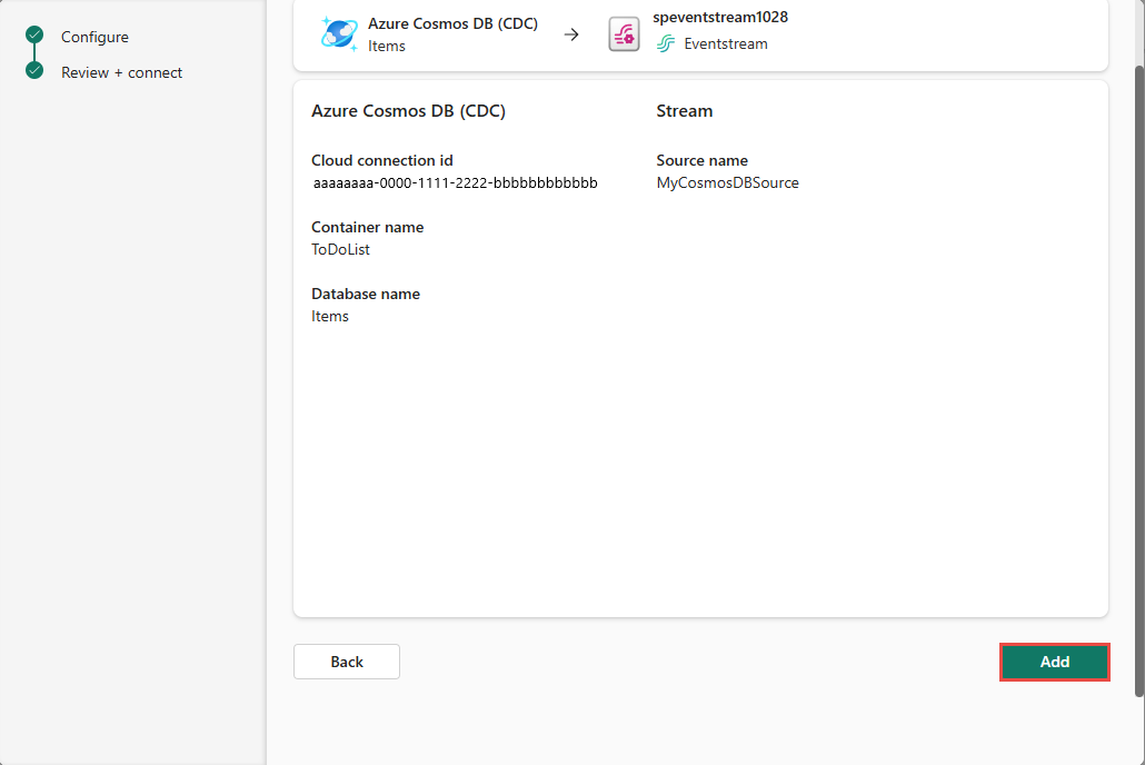 På sidan Granska + anslut granskar du sammanfattningen och väljer sedan Lägg till.