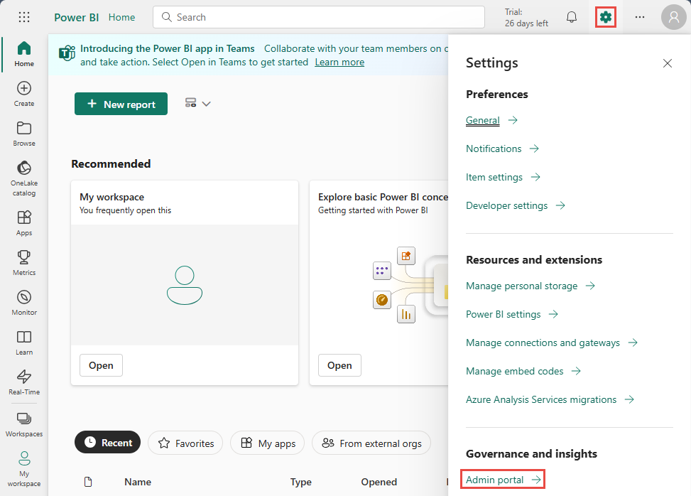 I det övre högra hörnet väljer du Inställningar (kugghjulsikon).