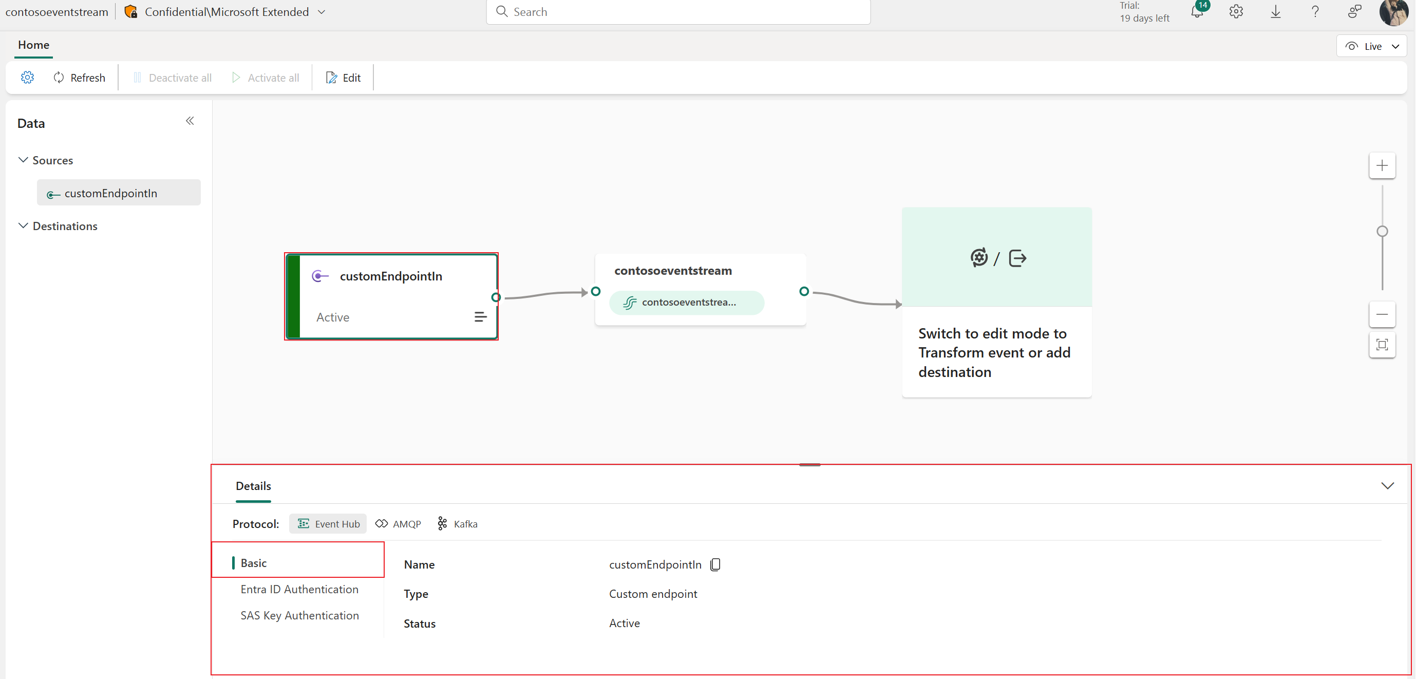 Basic visar namn, typ och status för din anpassade slutpunkt.
