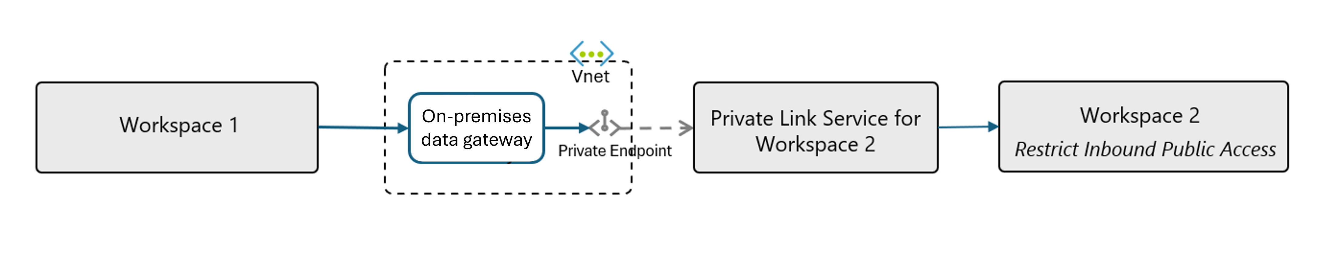 Ett exempel på hur du konfigurerar kommunikation mellan arbetsytor med hjälp av en lokal datagateway finns i Åtkomst till inkommande begränsade lakehouse-data från Power BI med hjälp av en lokal datagateway.