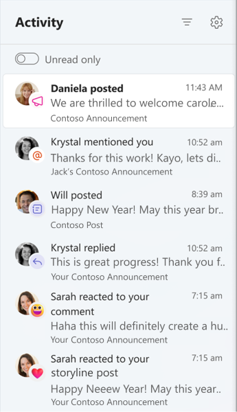 The Microsoft Teams activity feed notifies users of changes to enable them to triage items that require attention. Activity feed notifications in Teams include the following features: