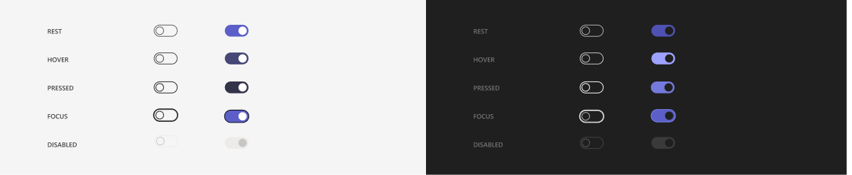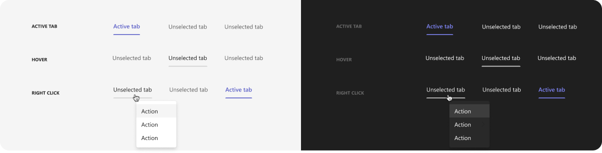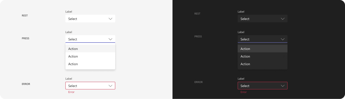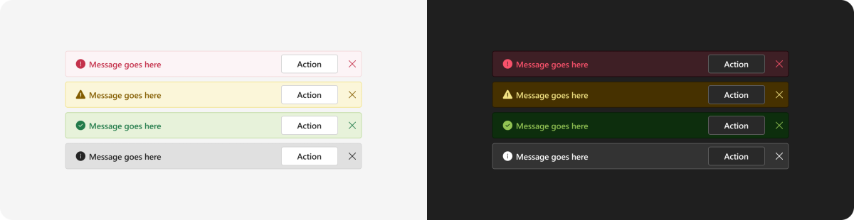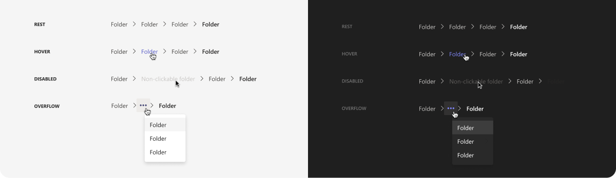 The illustrations on this page show how components look in Teams default (light) and dark themes.
