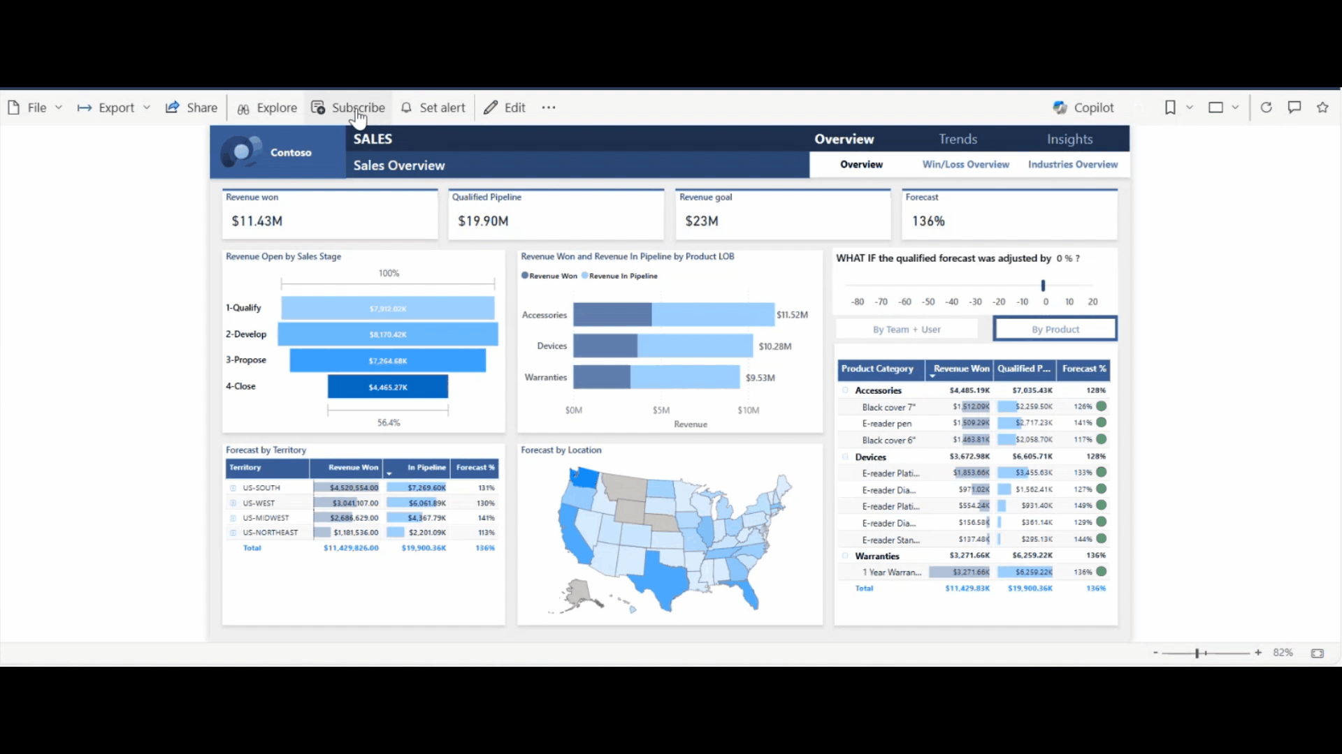 - Om du väljer filter och "Inkludera mina ändringar" när du sparar din prenumeration genereras Copilot-sammanfattningen för rapporten med filtren när prenumerationen sparades.