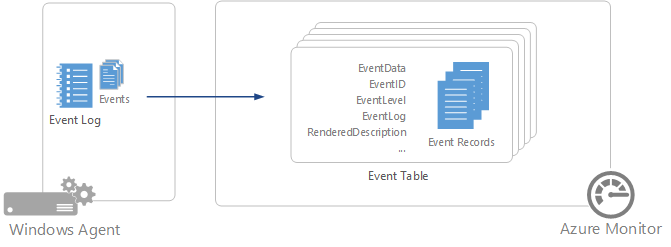 Azure Monitor samlar in varje händelse som matchar en vald allvarlighetsgrad från en övervakad händelselogg när händelsen skapas. Agenten registrerar sin status i varje händelselogg som den samlar. Om agenten går offline ett tag samlar den in händelser där den senast slutade, även om dessa händelser skapades när agenten var offline. Det finns en potential att dessa händelser inte samlas in om händelseloggen omsluts med osamlade händelser som skrivs över medan agenten är offline.