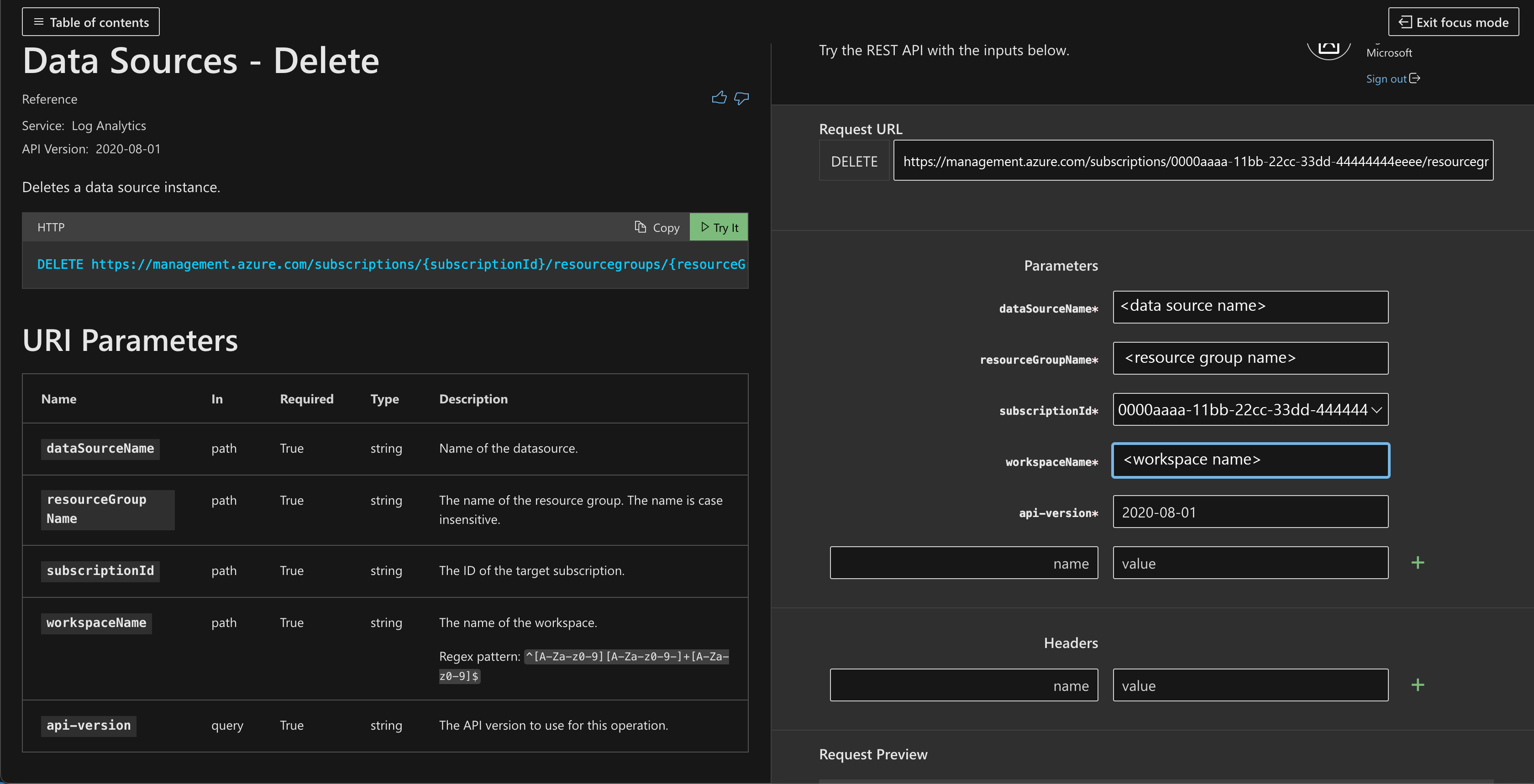 Om du samlar in aktivitetsloggar med den äldre insamlingsmetoden rekommenderar vi att du exporterar aktivitetsloggar till Log Analytics-arbetsytan och inaktiverar den äldre samlingen med hjälp av API:et Datakällor – Ta bort på följande sätt: