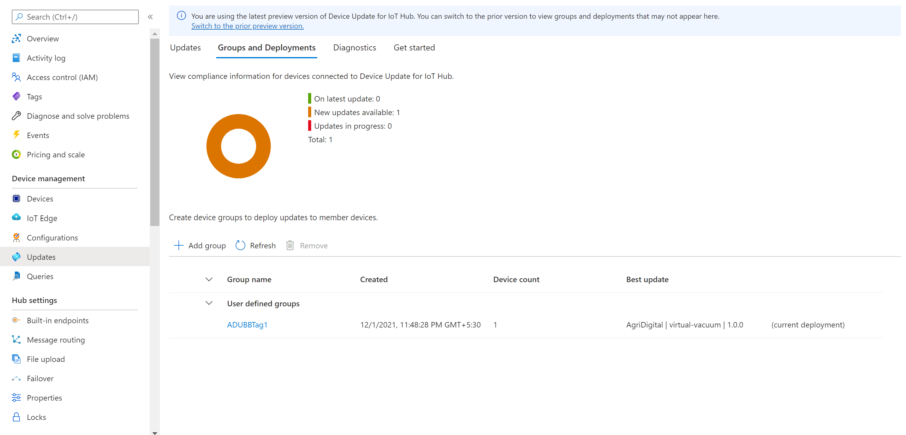 Gå till fönstret Enhetsuppdatering i din IoT Hub-instans.