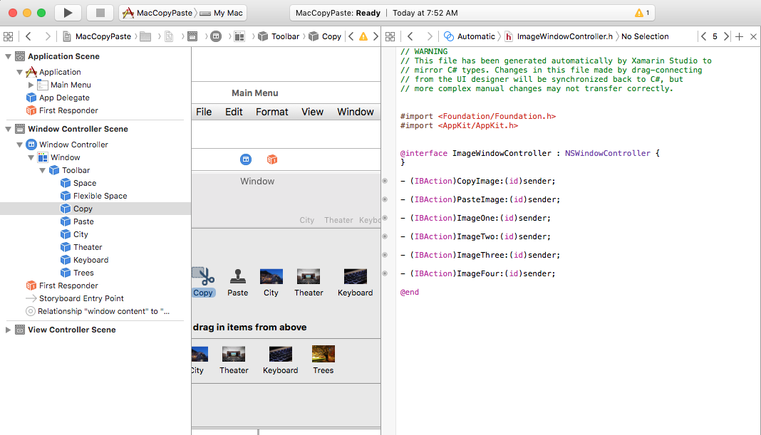 In this article, we'll cover the basics of working with the pasteboard in a Xamarin.Mac application to support copy and paste operations. It is highly suggested that you work through the Hello, Mac article first, specifically the Introduction to Xcode and Interface Builder and Outlets and Actions sections, as it covers key concepts and techniques that we'll be using in this article.