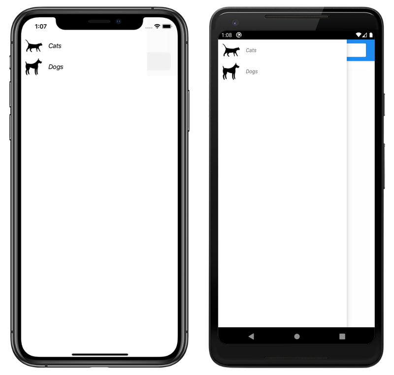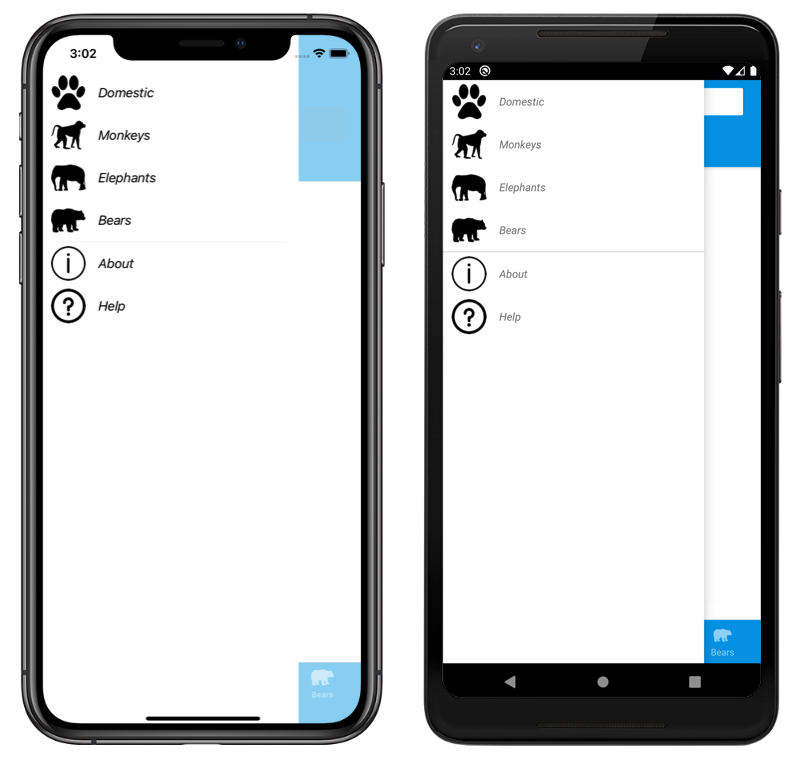 The navigation experience provided by Xamarin.Forms Shell is based on flyouts and tabs. A flyout is the optional root menu for a Shell application, and is fully customizable. It's accessible through an icon or by swiping from the side of the screen. The flyout consists of an optional header, flyout items, optional menu items, and an optional footer: