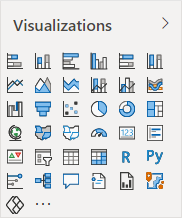 Visuella objekt är visualiseringar av semantiska modelldata. Power BI innehåller över 30 kärnobjekt, som är inbyggda och tillgängliga för alla rapporter. Du kan komma åt de visuella kärnobjekten i det första avsnittet i fönstret Visualiseringar .