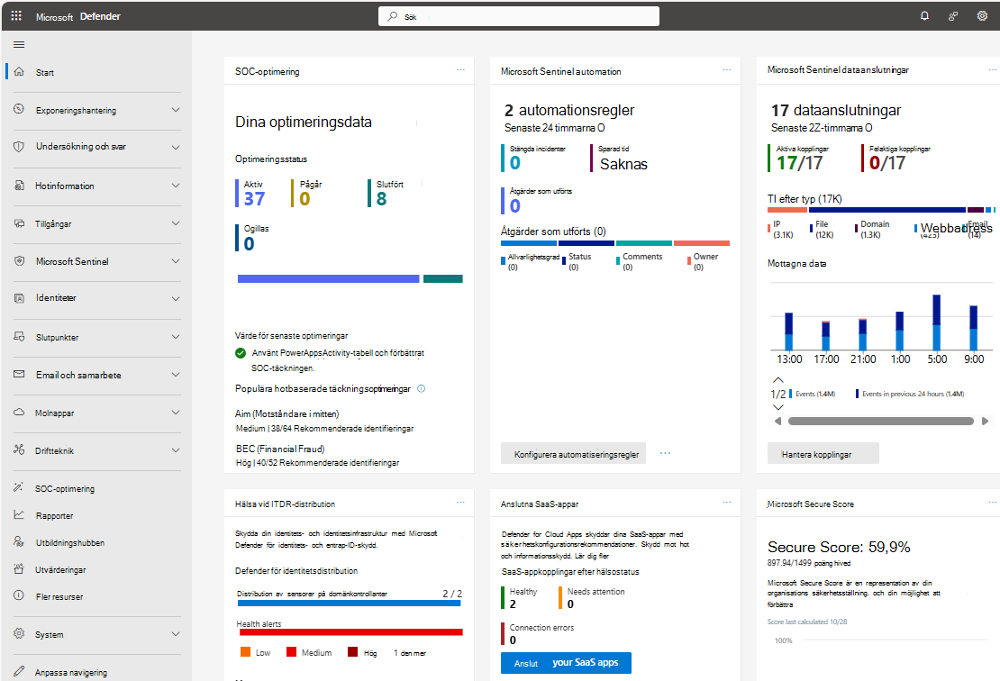 Skydda en mängd olika tillgångar genom att integrera Defender XDR, Microsoft Sentinel och andra Defender-tjänster i Defender-portalen.
