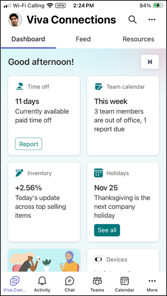 Microsoft Viva Connections is your gateway to a modern user experience and is designed to keep everyone engaged and informed. Connections is a customizable app that can be accessed through Microsoft Teams or the web from your desktop, mobile, or table device.