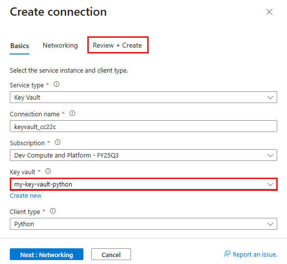 - In Name, type msdocs-python-postgres-XYZVaultEndpoint.