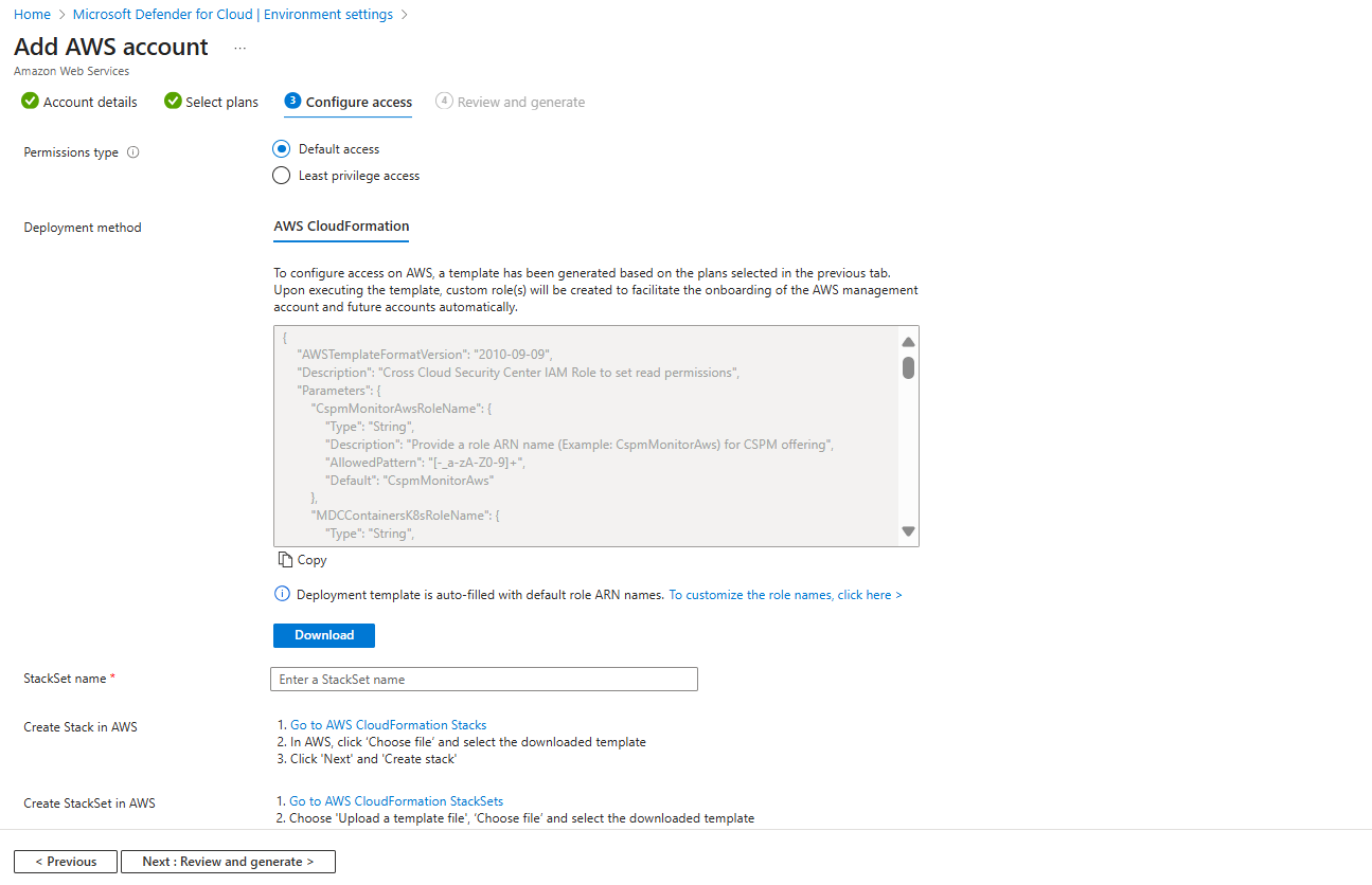 arn:aws:iam::<accountId>:role/CspmMonitorAwsSelect Configure access, and choose: