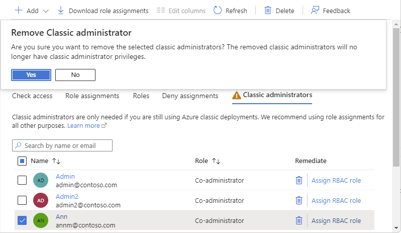 If you still have classic administrators, use the following steps to help you convert Co-Administrator role assignments.