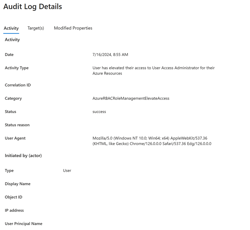 User has elevated their access to User Access Administrator for their Azure ResourcesThe role assignment of User Access Administrator has been removed from the userTo download and view the payload of the log entries in JSON format, select Download and JSON.
