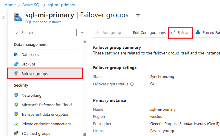 To configure a failover group, you should already have proper permissions and a SQL managed instance you intend to use as the primary. Review Create instance to get started.
