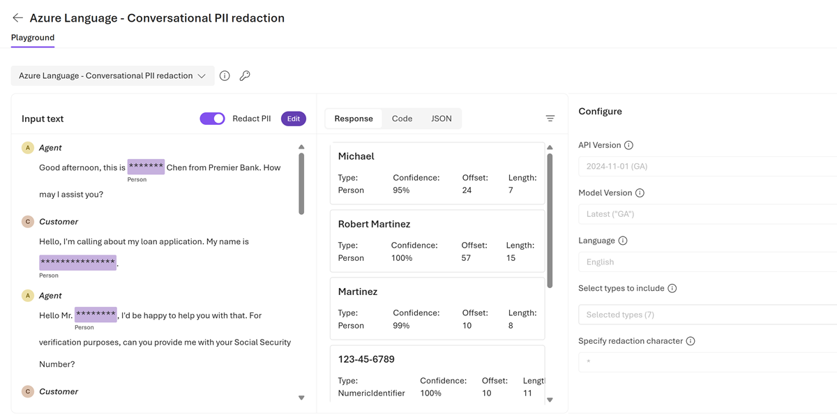 Personally identifiable information (PII) detection identifies entities in text and conversations (chat or transcripts) that are associated with individuals.